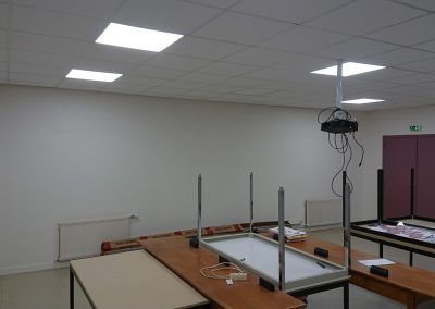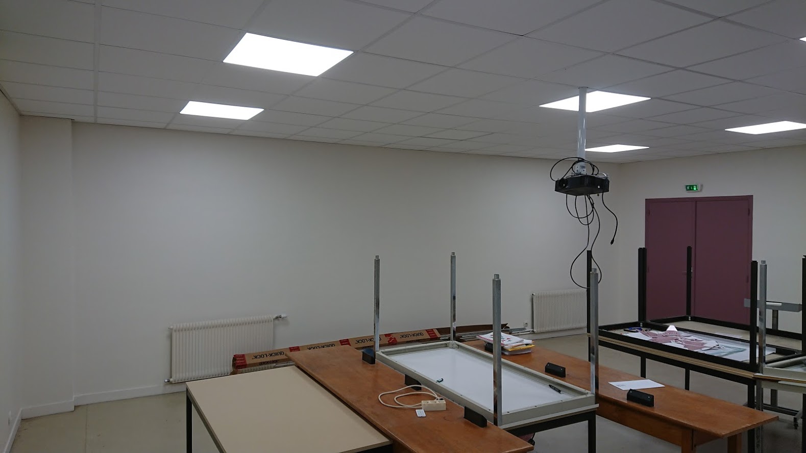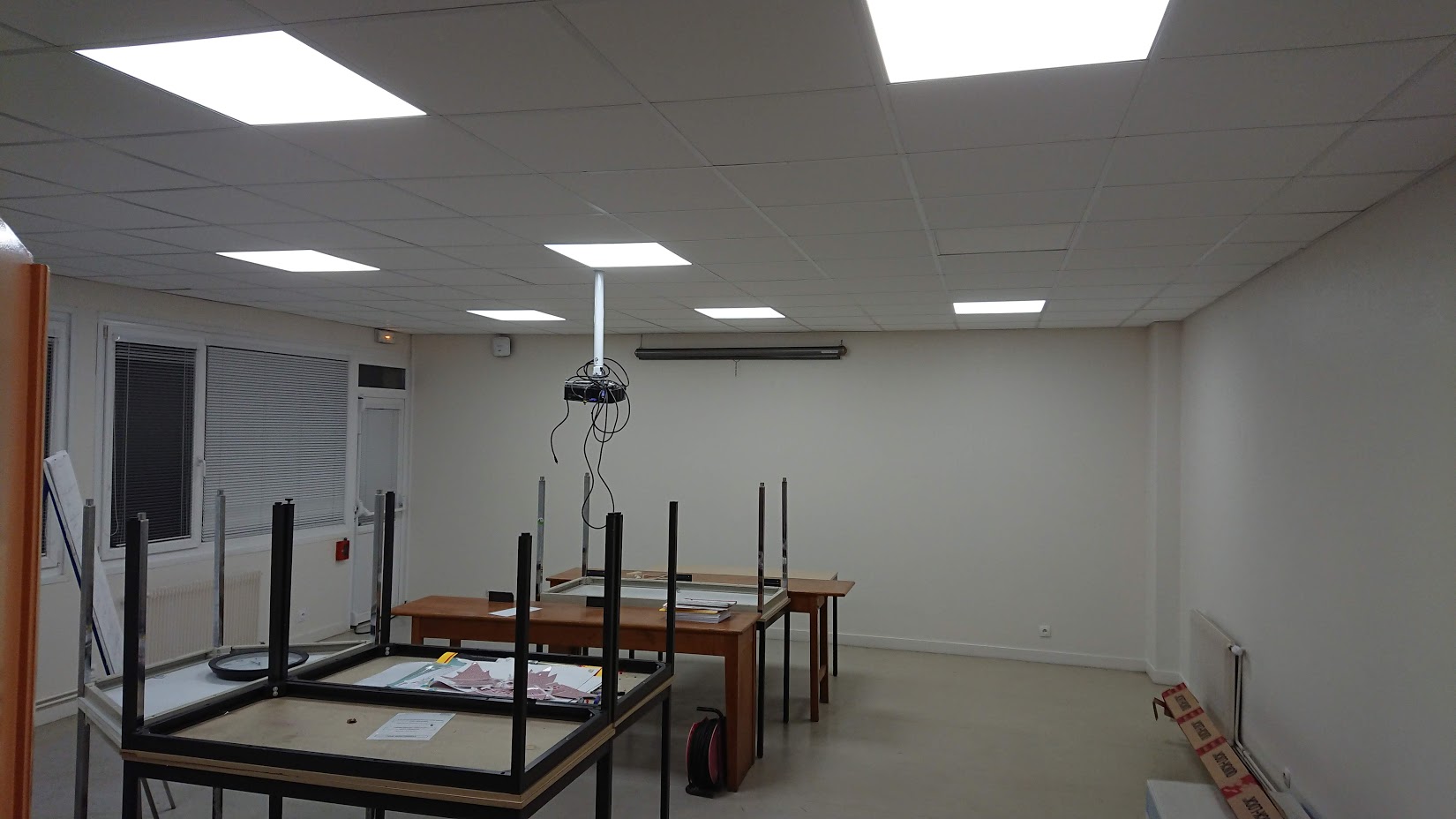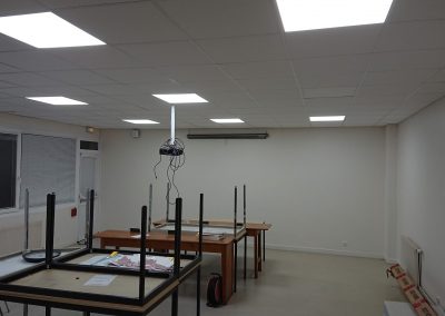 Faux plafond modulaire avec des dalles amovibles avec beaucoup de choix esthétiques pour la finition. Ce système très utilisé dans le domaine tertiaire (buraux, hôtels, écoles, hôpitaux,…) permet de conserver un accès technique au dessus du faux plafond pour la maintenance des différents réseaux (électrique, téléphone, wifi, eaux, etc.)