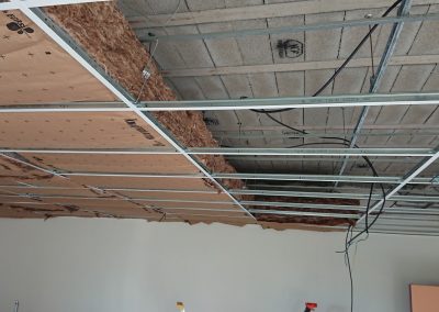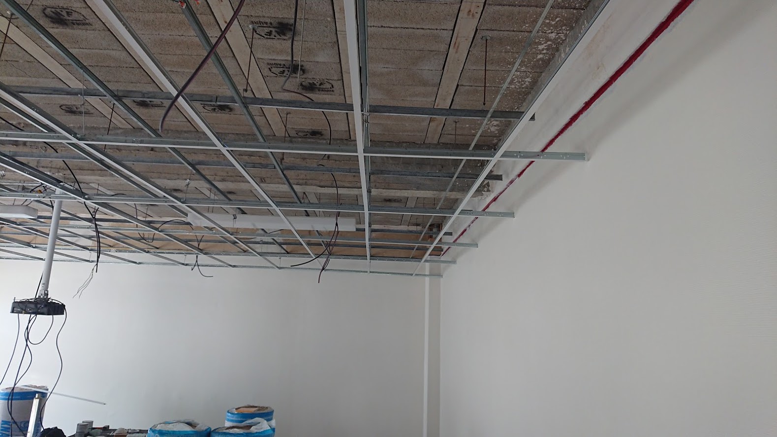 Faux plafond fixe, le plus souvent réalisé en plaque de plâtre sur ossature métallique. Cela permet le passage d’alimentation d’éclairage essentiellement, de rattraper les défauts de l’ancien plafond ou réduire la hauteur d’une pièce pour réduire la consommation de chauffage.